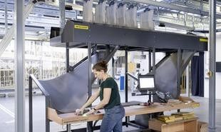 Klingt wie eine Entspannungs-Therapie, hat aber tatsächlich ergonomische Vorteile. Speziell für den Taschensorter SSI Carrier entwickelte «SmartDrop»-Taschen ermöglichen entlang des Hängeförderystems ein automatisches Abladen der Ware oberhalb der Arbeitsplätze und reduzieren manuelle Eingriffe auf ein Minimum.