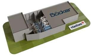Viastore richtet ein Lager für Krane, Schrägaufzüge und Zahnstangentechnik mit Platz für 7500 Paletten und 14.000 Behälter für Böcker in Werne ein. Der Auftraggeber entwickelte seinerzeit den ersten Autokran in Aluminium-Leichtbauweise und brachte 1997 den ersten Alu-Anhängerkran auf den Markt.