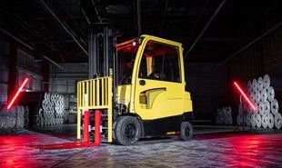 L'illuminazione scenografica con effetti luminosi è, per così dire, "opzionale". Per il resto, i nuovi carrelli elevatori elettrici della Serie A, che Hyster lancia per applicazioni interne ed esterne e con carichi fino a